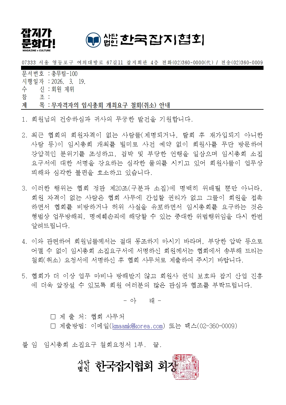 ¹«ÀÚ°ÝÀÚÀÇ ÀÓ½ÃÃÑȸ °³Ãֿ䱸 öȸ(Ãë¼Ò) ¾È³»
